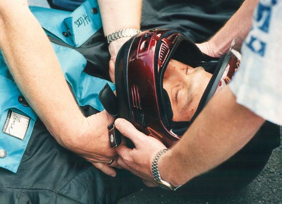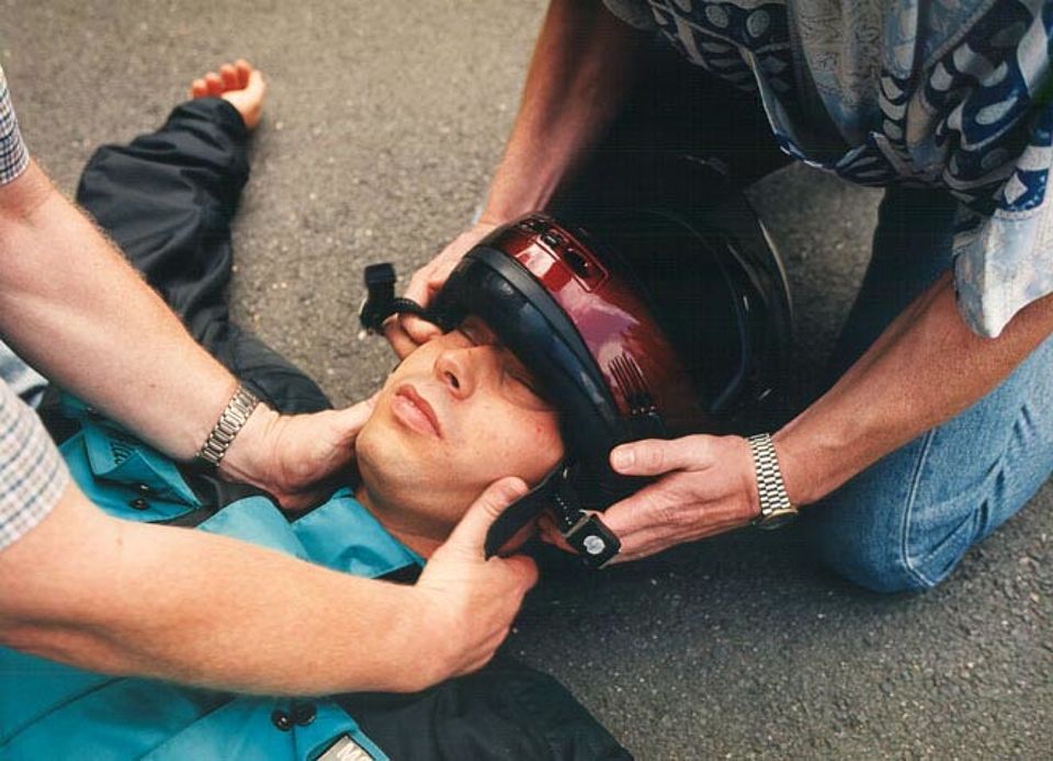 Bei einem bewusstlosen Motorradfahrer ist das Abnehmen des Helmes notwendig, da nur danach eine sachgerechte Lagerung (bei vorhandener Atmung: stabile Seitenlage ) bzw. eine Atemspende durchgeführt werden kann.